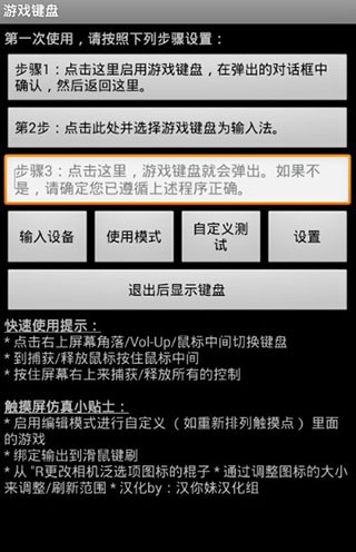 1、打开手机虚拟键盘中文版app,显示快速使用提示和触摸屏模拟提示;