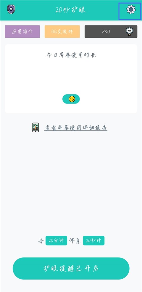 1.进入20秒护眼,点击右上角【设置图标】。