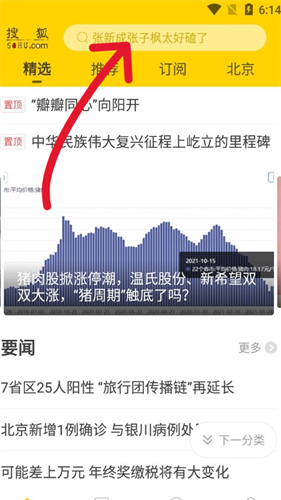 4、在搜狐官网搜索页面,您可以直接在搜索框中输入您感兴趣的新闻关键词进行搜索。您还可以向下滚动页面浏览最新新闻。