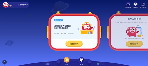 1.打开软件,学习部分有免费试用思维训练课程。