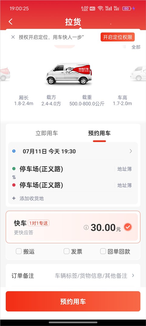 【灵活选择车型】支持厢式货车、小货车等多种车型,适配不同物品