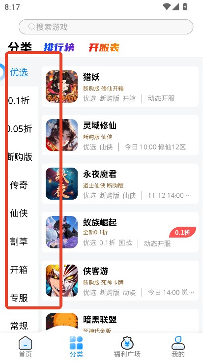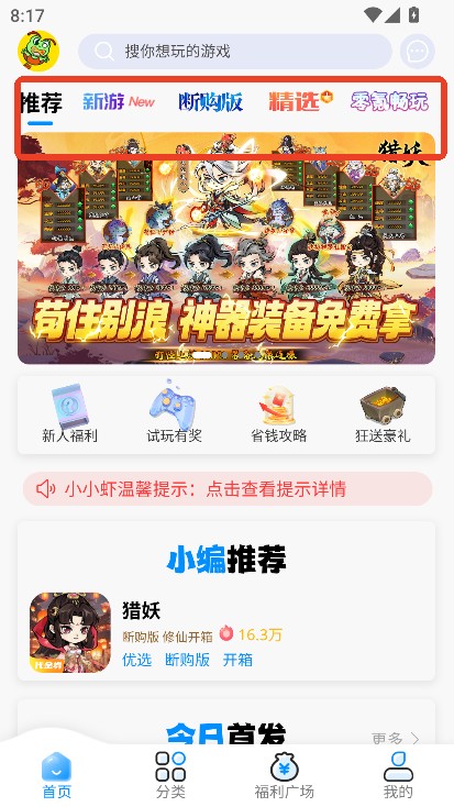 1.打开凸凸虾手游盒子app,进入首页可以看到很多游戏。