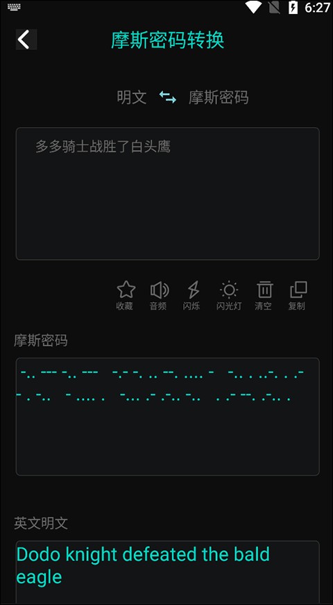3、软件可以一键翻译转换摩尔斯电码,让用户的聊天更加炫酷、个性化。