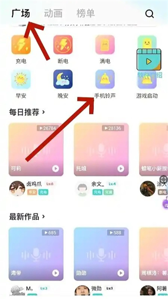 2.点击页面上的“方形”选项,选择“手机铃声”。