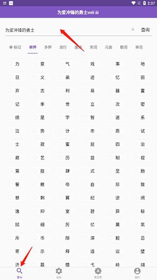 1、下载并打开韵律助手,然后在输入框中输入文字,点击查询;