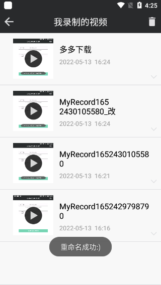 6、剪辑配音的视频也会加载到“我的录制视频”中。建议修改重复的名称,以便于区分。