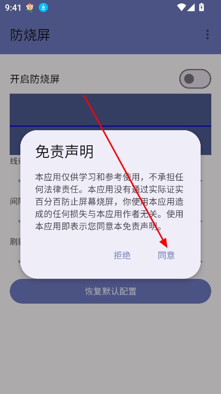1、下载安装防烧屏工具箱APP,点击同意进入