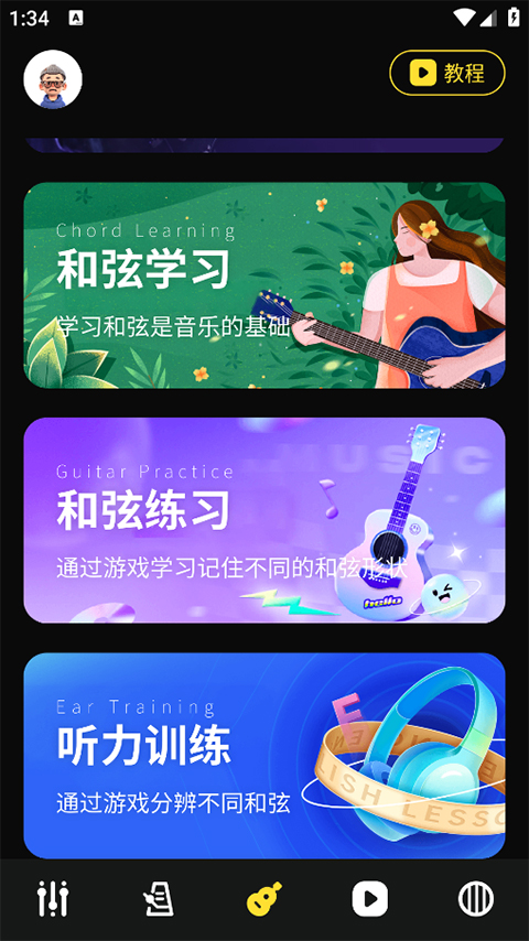 4.还可以通过小游戏练习和弦