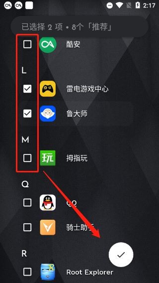 3. 如果您想查找某个应用程序,请单击该应用程序的第一个字母。手机中的所有应用程序均按首字母排序。