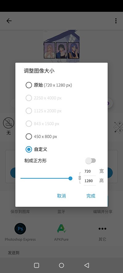 2.完成图片编辑后,点击右上角的设置按钮,会弹出调整图片大小的按钮。