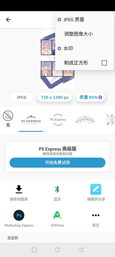 按住图片可查看原图进行比较,然后点击右上角的分享按钮保存您的作品。这样一张手机PS处理过的图片就完成了。