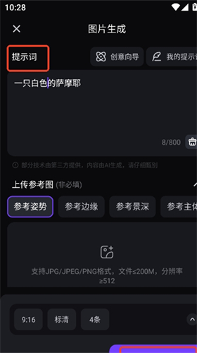 2.输入关键词和参考图片,点击生成