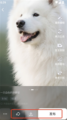 4、图片生成后可以转发、下载、发布,支持编辑、重新生成。