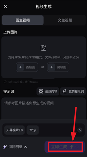 3. 输入内容并单击立即生成。