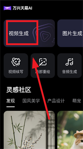 2.进入首页后,点击视频生成