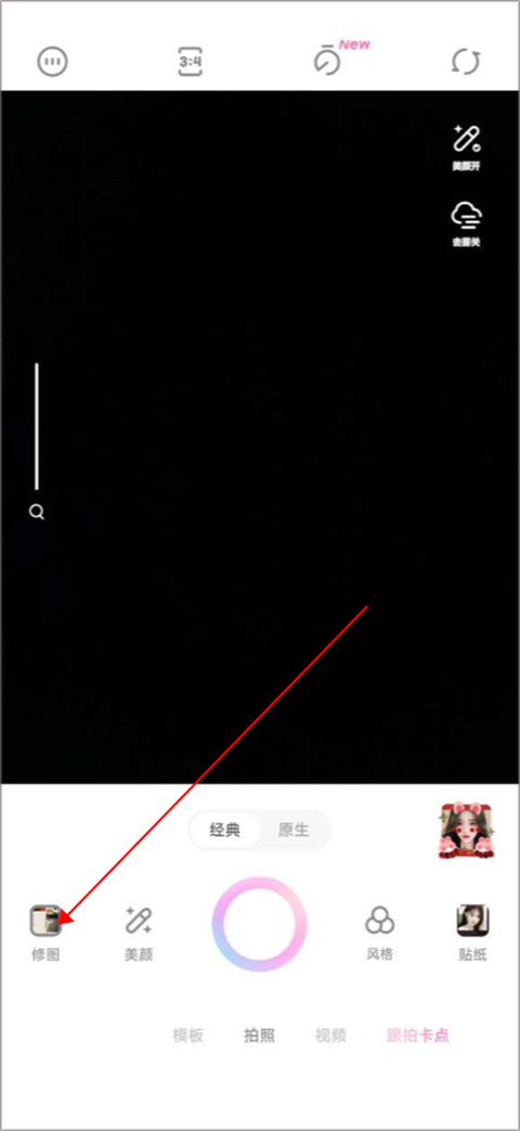 1、用户点击益天相机首页左下角的模板。
