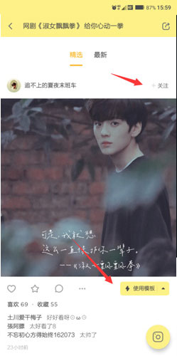 3. 只需点击“使用模板”即可轻松应用。如果您想继续关注该模板的作者,可以点击右上角的“关注”按钮。