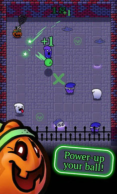 一个南瓜战士用你手里的球拍拍绿球。你的目标是攻击那些地牢幽灵。