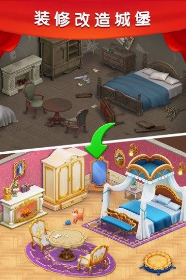 玩家需要跟随游戏的消失,完成任务的突破。游戏还有丰富的道具供玩家使用,解锁更多新家具来装饰旧城堡,将其重新装饰成新城堡。快来体验乐趣吧。