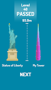 玩家通过点击屏幕控制管子向上推,轻松跟随音乐节奏构建管子的高度,看看你堆叠的管子是否超过自由女神像。
