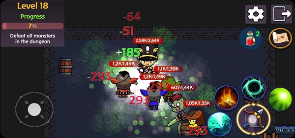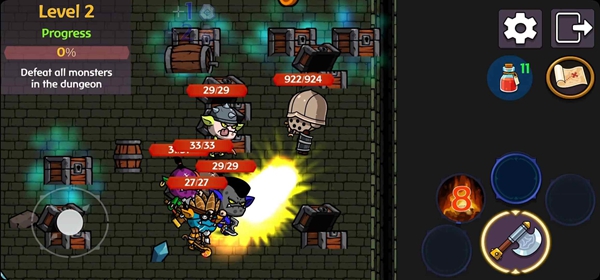 2.地牢由多个房间组成。玩家需要清除所有房间的所有怪物。