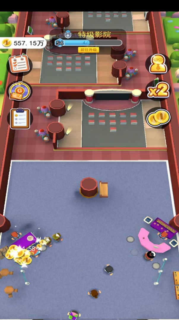 2、在游戏中,你将管理自己的电影院,在这里你需要安排不同的内容,吸引更多的顾客。