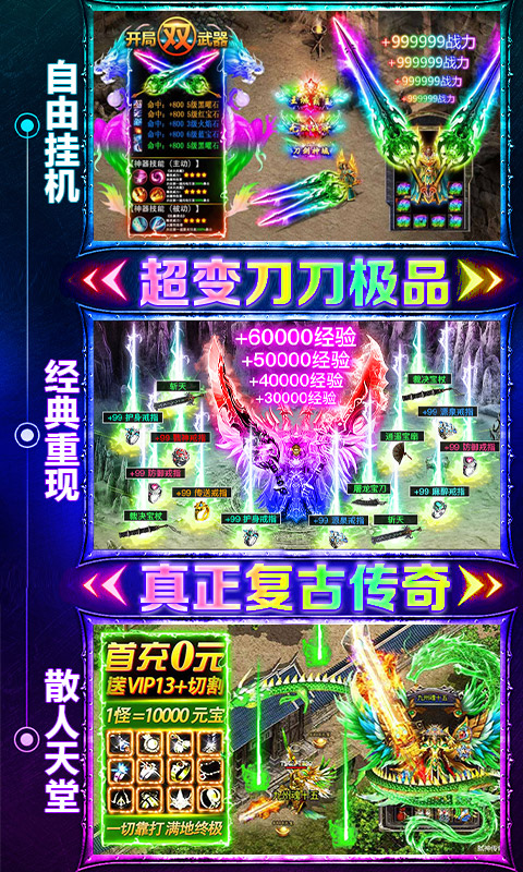 游戏坚持一刀杀怪,整个道具爆炸率极高。如果你打了一个怪物,你可能会掉落优秀的装备。