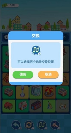 2、你可以合成同样的,不断催生更高级更华丽的建筑,让你的城市越来越繁荣;