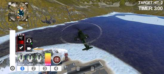 自由选择直升机配备的武器和特种装备,尝试使用简单的操作模式,挑战各种射击模式,循环扫射射击、翻转射击