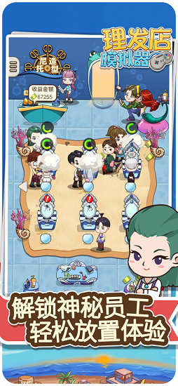 2。经营你的理发店以解锁更多的理发师,扩展店内更多的区域以提供更多的理发服务,并建造高级客房;