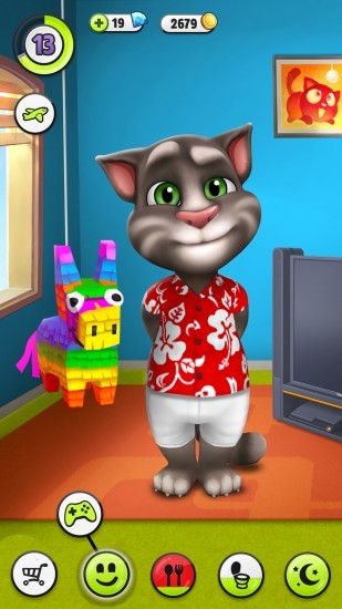 与汤姆互动:与汤姆交谈,他仍然会重复你说的话。戳他、抚摸他或挠他痒痒,看看他的反应。