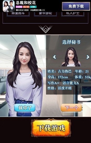 3、体验最真实的创业生活,让更多员工帮你管理公司,招募各种美女秘书。