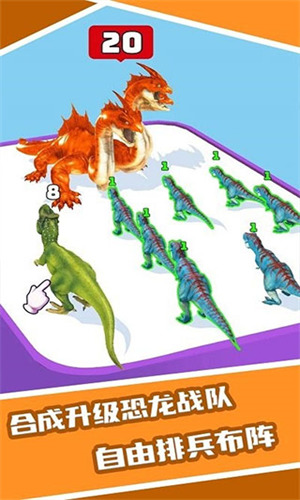 通过轻松休闲的合成玩法,解锁新的恐龙种类,解锁新的、更强大的恐龙,管理好你的恐龙,解锁更多的插画,让它们帮你获得大量金币。