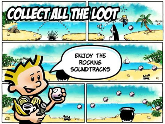 从丛林开始,你的冲刺冒险找到出路,继续前往海滩、沙漠、金矿等等!每个环境都有自己的敌人和陷阱。随着你对漫画书的深入了解,它们会变得越来越困难。