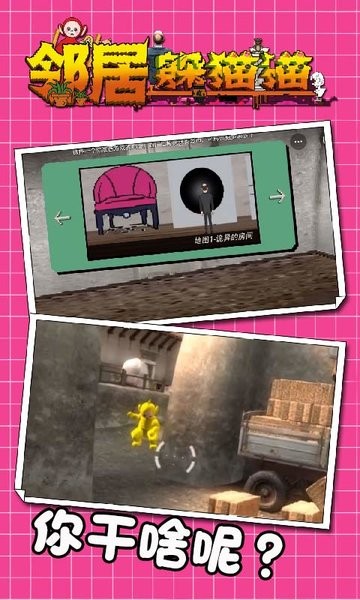 邻居躲猫猫中文版众多场景,更多好玩的游戏内容,给你意想不到的新乐趣,新口味。精美的游戏画面给你不一样的体验。你可以变身为各种不同的物品。玩家扮演隐藏人物的角色。给您意想不到的全新高品质新体验。如果你有兴趣,尝试一下就知道了。