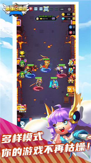 最强召唤师一款半放置卡牌游戏,主打无脑一键装备操作、各种技能超华丽特效、各职业超级英雄培养。 最强召唤师还可以与超级英雄搭配,获得更牢固的羁绊!创建自己的队伍最强召唤师,开始推关、爬塔、竞技对战之旅!每个关卡都有顶级宝箱等你来收集,你可以获得更强大的英雄。还可以通过等级属性、装备强度、英雄升级、技能解锁来培养英雄。
