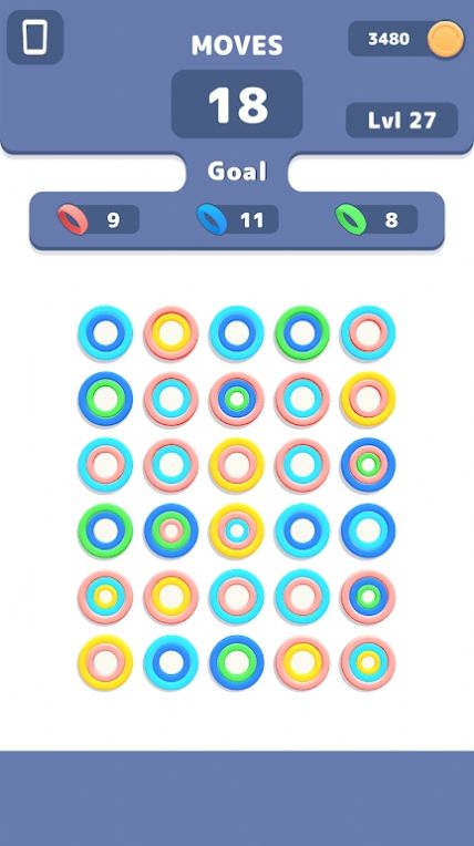 1. 玩家需要通过将三个或更多相同颜色的圆圈连接在一起来消除它们。