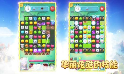 1.【创新策略三消玩法,数百种消除特效,自由组合】在《童话萌消团》中,你不仅要考虑三消,还要考虑道具、英雄技能、各种童话故事的怪物和老板。为了还原真实的消除体验,玩家可以通过高概率的四消和五消获得强大的战斗道具。不同的道具组合还可以产生更加华丽的消除效果。
