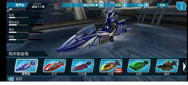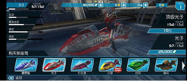4、丰富的奖励:游戏中有多种奖励机制,包括金币、经验值、道具等,玩家可以通过比赛、完成任务获得奖励,可以用来升级快艇、购买装备、提升技能。