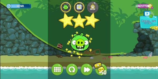 1.超过60个关卡并且免费更新。你将继续享受小猪碰撞、爆炸和飞行的乐趣。
