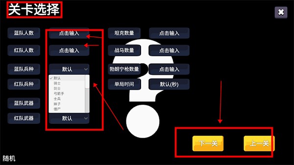 然后设置每个营地的人数并选择你想玩的关卡。