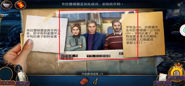 2.公文包里可以拿到案件卷宗和尖嘴钳,记得先拿走。随后,将案件卷宗直接交给一旁的侦探,进入拼图游戏。在拼图游戏中,点击各个拼图进行旋转,最终的结果就是下图所示的两张完整的图像。