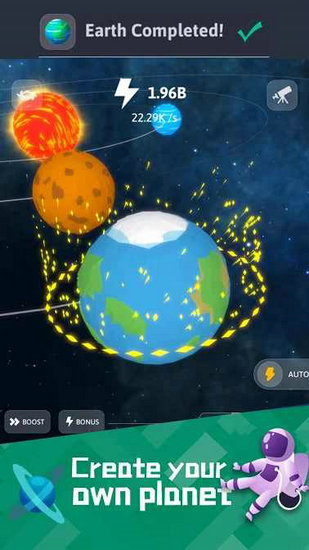 在空闲的星系创造者中,你将创造太阳、水星、金星、地球、火星、木星等等。