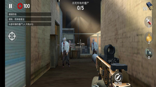 3.丰富的游戏关卡等你来完成,完成任务后解锁新的炫酷武器装备,提升你的战斗力,让丧尸不再成为你的压力。