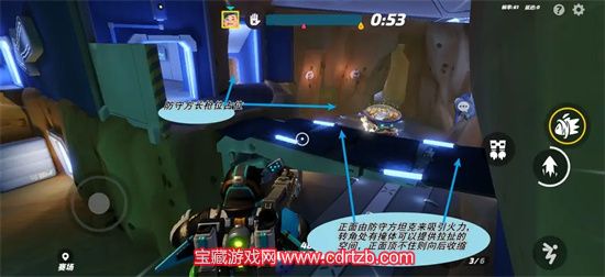 右边二楼经常被防守单位占据,需要两名玩家一起前进,比如装弹+输出,或者输出+支援
