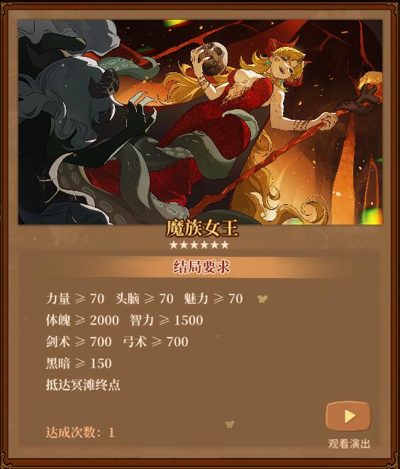 包含结局:【恶魔女王六星】【天堂会boss结局五星】【盗贼二星】【诈骗犯三星】【邪恶狱卒三星】