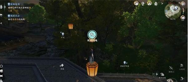 不要直接飞到塔顶,需要在塔前找到小青接受任务(745,820),然后根据提示使用钩锁爬到塔顶,然后将木鸟带下塔即可完成任务。