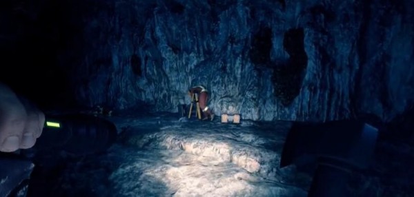 5.之后只需要一直往前走,杀掉挡路的野人,就可以在山洞尽头拾取绳枪。