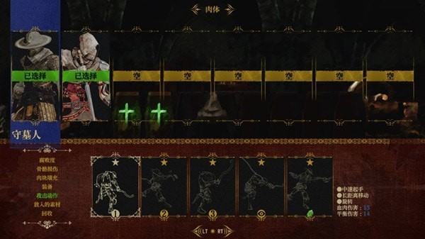 游戏第一天,我们会随机获得两具即将腐烂的尸体(仅限见过的)、一些肉骨等初始材料,以及关键锄头防腐剂等资源(可找到在血杯解锁类型和初始数量),随机身体仍然是一个很好的设置,例如,如果你可以滚动到雷霆骑士或冰骑士,你可以相当轻松地完成“四串”关卡。