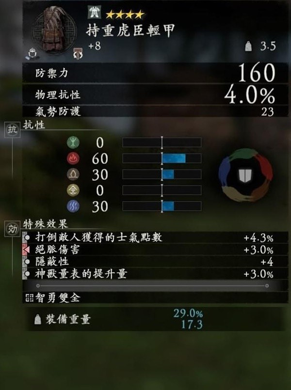 装备方面主要提升:1.残酷伤害,2.隐蔽,3.箭矢远程攻击恢复,4.击败敌人增加士气,5.神兽规增加量。